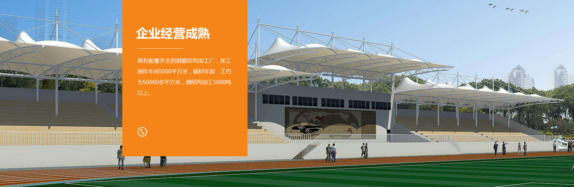 武漢科索爾膜結(jié)構(gòu)技術(shù)有限公司是專業(yè)大型武漢膜結(jié)構(gòu)公司,擁有配套齊全的鋼膜結(jié)構(gòu)加工廠,產(chǎn)品類型包括湖北武漢景觀膜結(jié)構(gòu),車(chē)棚膜結(jié)構(gòu),張拉膜結(jié)構(gòu)等。武漢膜結(jié)構(gòu)價(jià)格咨詢,武漢膜結(jié)構(gòu)設(shè)計(jì)施工,就選科索爾!棋牌開(kāi)發(fā) 武漢科索爾膜結(jié)構(gòu)技術(shù)有限公司是國(guó)內(nèi)集研發(fā)、設(shè)計(jì)、生產(chǎn)、制作、安裝為一體的專業(yè)大型膜結(jié)構(gòu)公司,公司擁有配套齊全的鋼膜結(jié)構(gòu)加工廠,加工設(shè)施齊全,技術(shù)人員齊備,加工制作車(chē)間5000平方米,膜材年加工約50000多平方米,鋼結(jié)構(gòu)加工5000噸以上。公司工程技術(shù)部具備專業(yè)的施工管理能力和技術(shù)實(shí)力,人員配備合理,擁有鋼結(jié)構(gòu)和膜結(jié)構(gòu)工程專業(yè)性強(qiáng)、經(jīng)驗(yàn)豐富的管理和施工隊(duì)伍,機(jī)械設(shè)備齊全。 ...